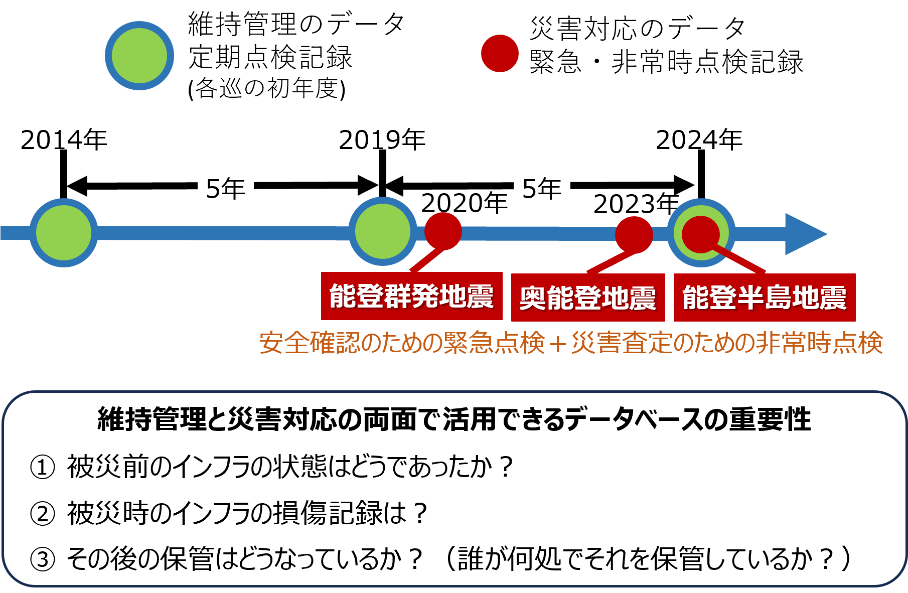 Roads used by citizens include farm roads and forest roads. However, the road database kept by the Ministry of Land, Infrastructure, Transport and Tourism is different from that kept by the Ministry of Agriculture, Forestry and Fisheries. As a result, during emergency inspections immediately after the Noto Peninsula earthquake, initial responses were hindered as roads that were passable regardless of jurisdiction were used. For this reason, in collaboration with Sub-Task D, the followings are being researched and developed: (1) Investigate the needs for information, functions, conditions, etc. required for recovery and reconstruction, and set appropriate development goals. (2) Build a system that consolidates data managed by different business entities, integrates them through automatic conversion, and visualizes and shares them. (3) Develop human resources who can utilize data.